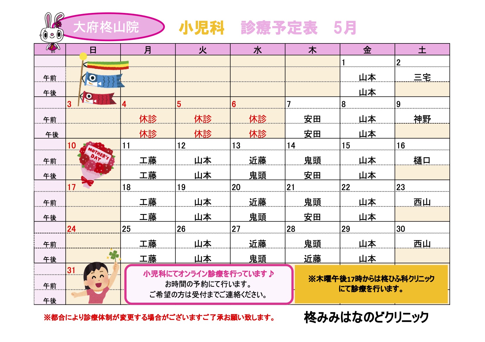 都合により診療予定が変更する場合もございます。ご了承ください。
