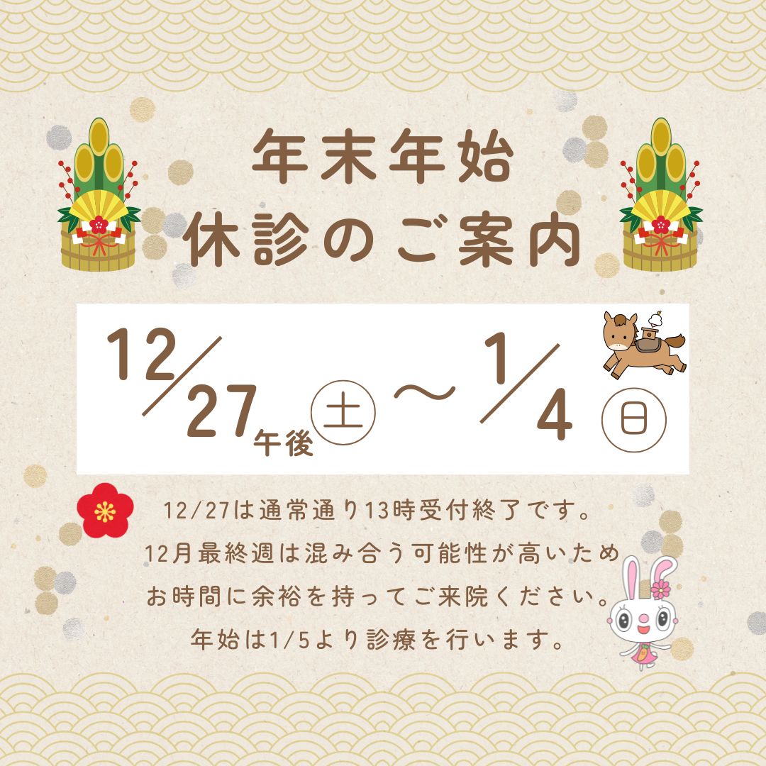 12月27日(土)午後 から 1月4日(日)まで休診となります。