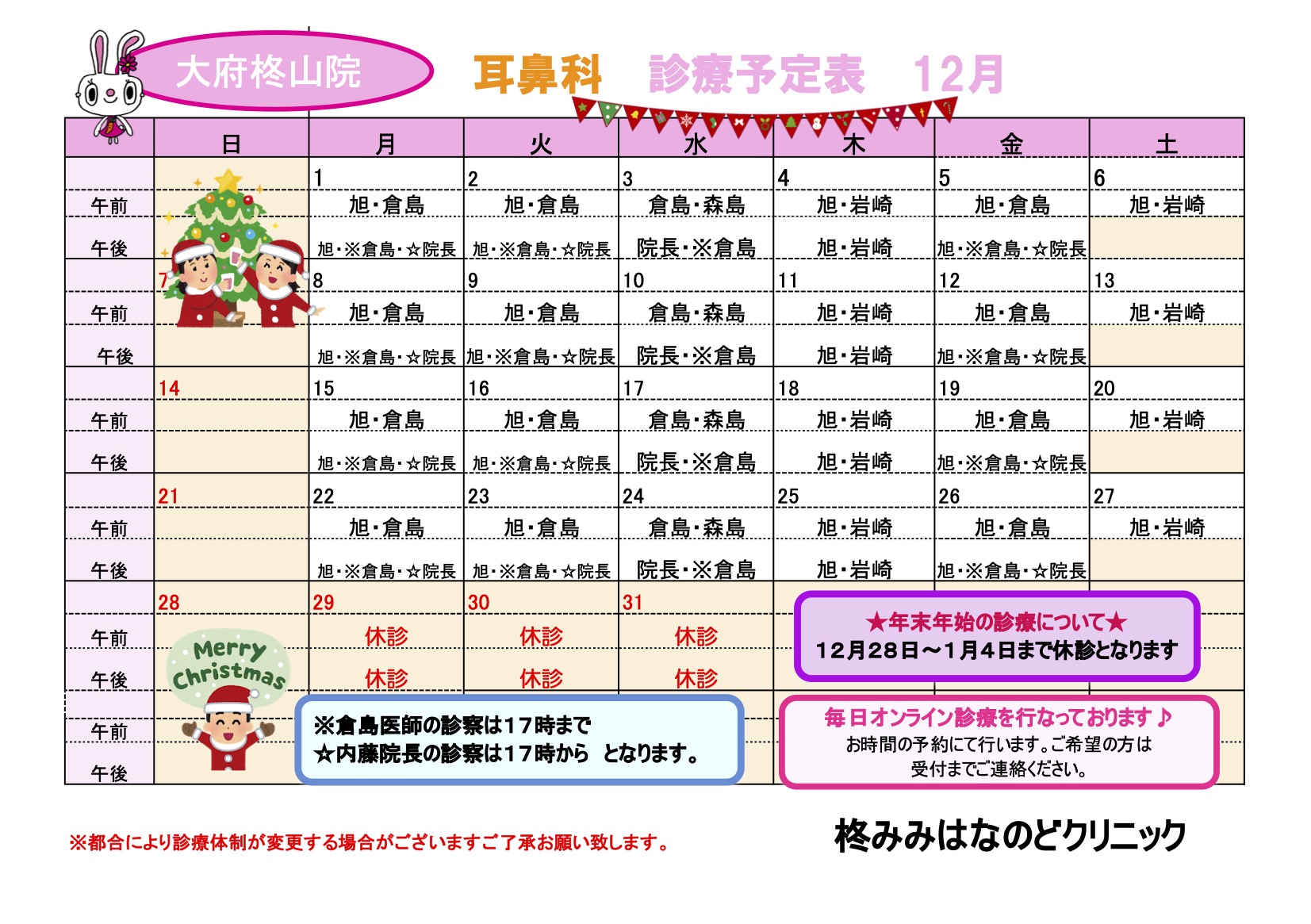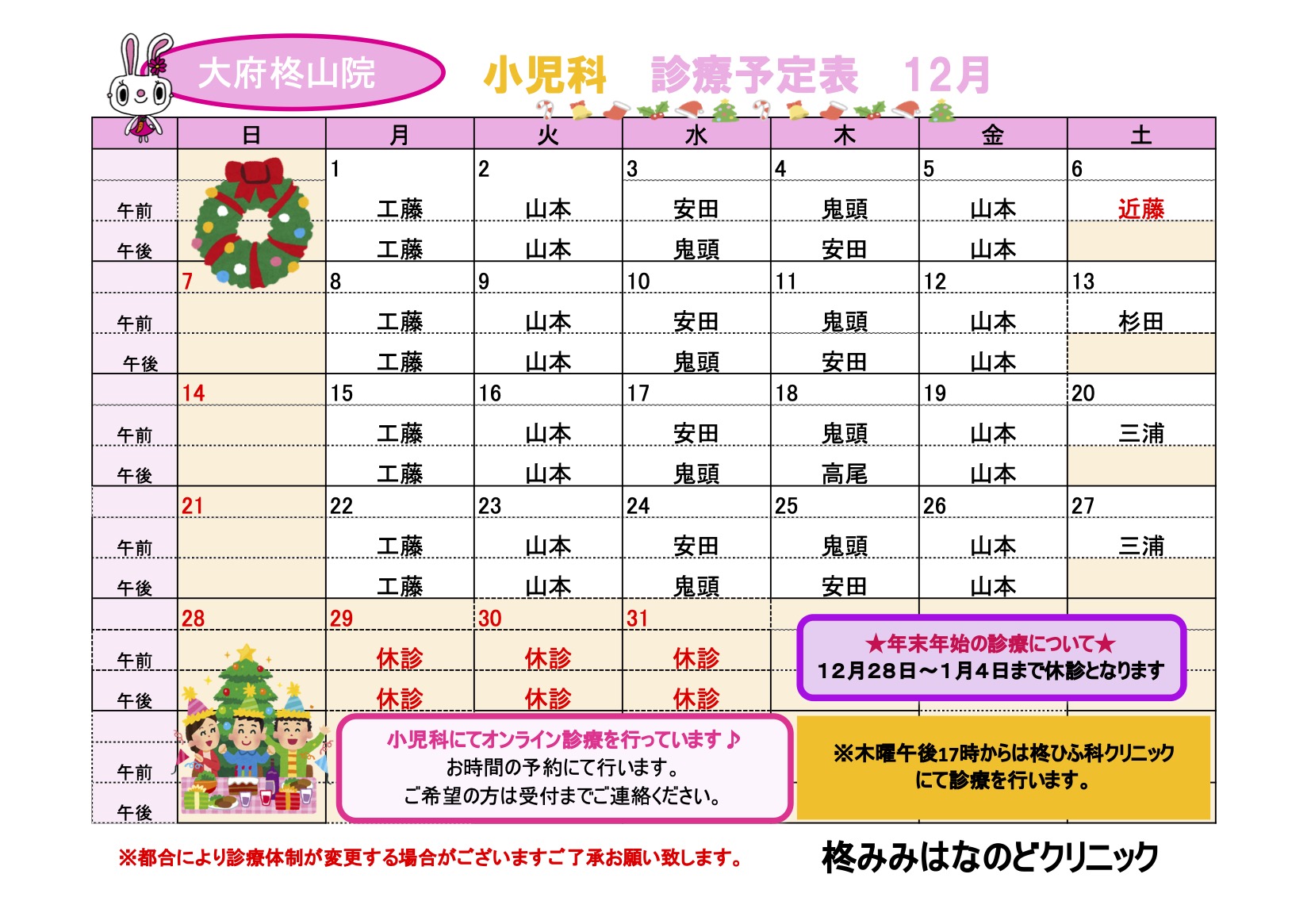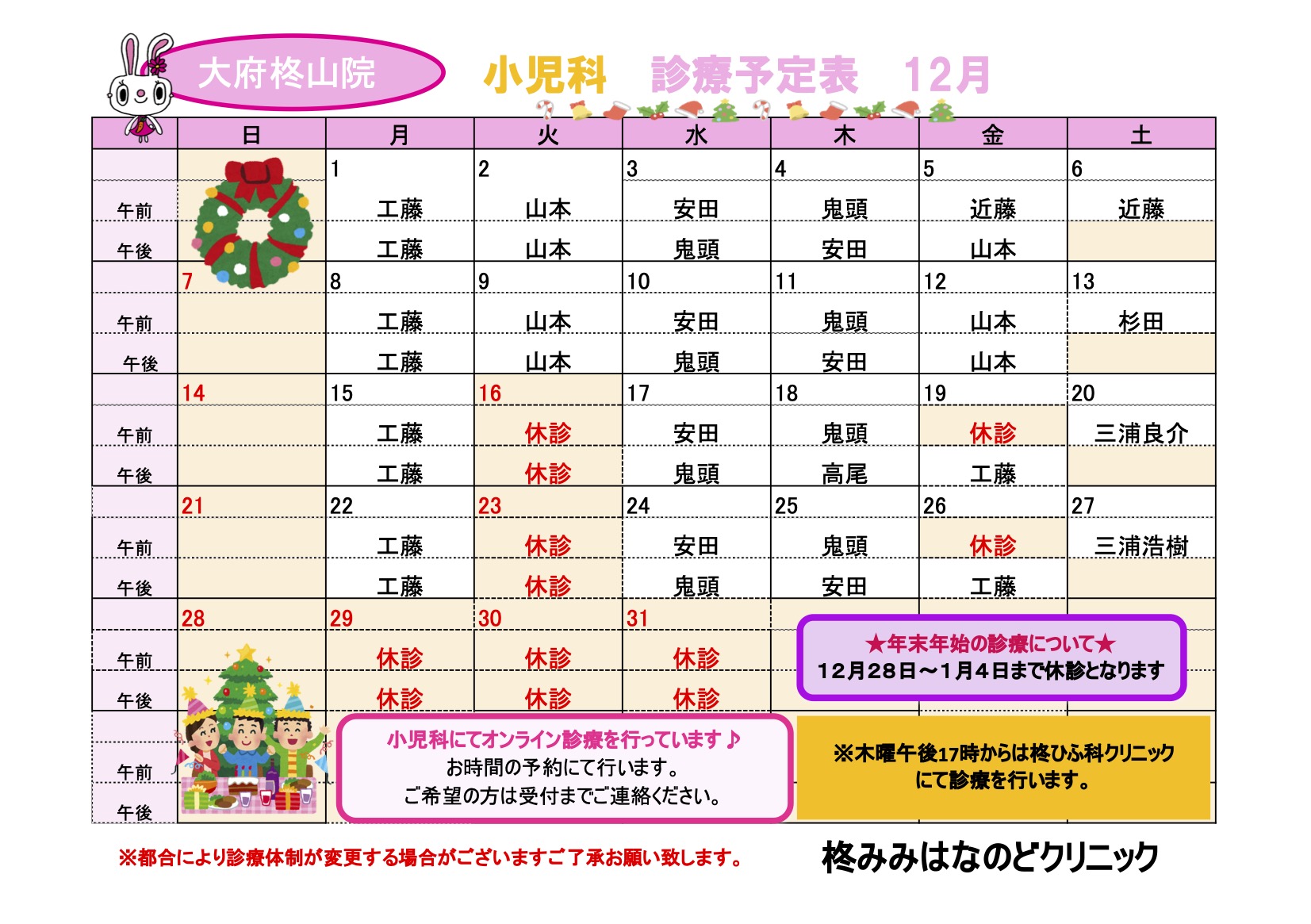 都合により診療予定が変更する場合もございます。ご了承ください。