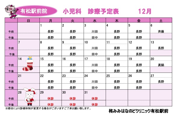 3月診療予定表