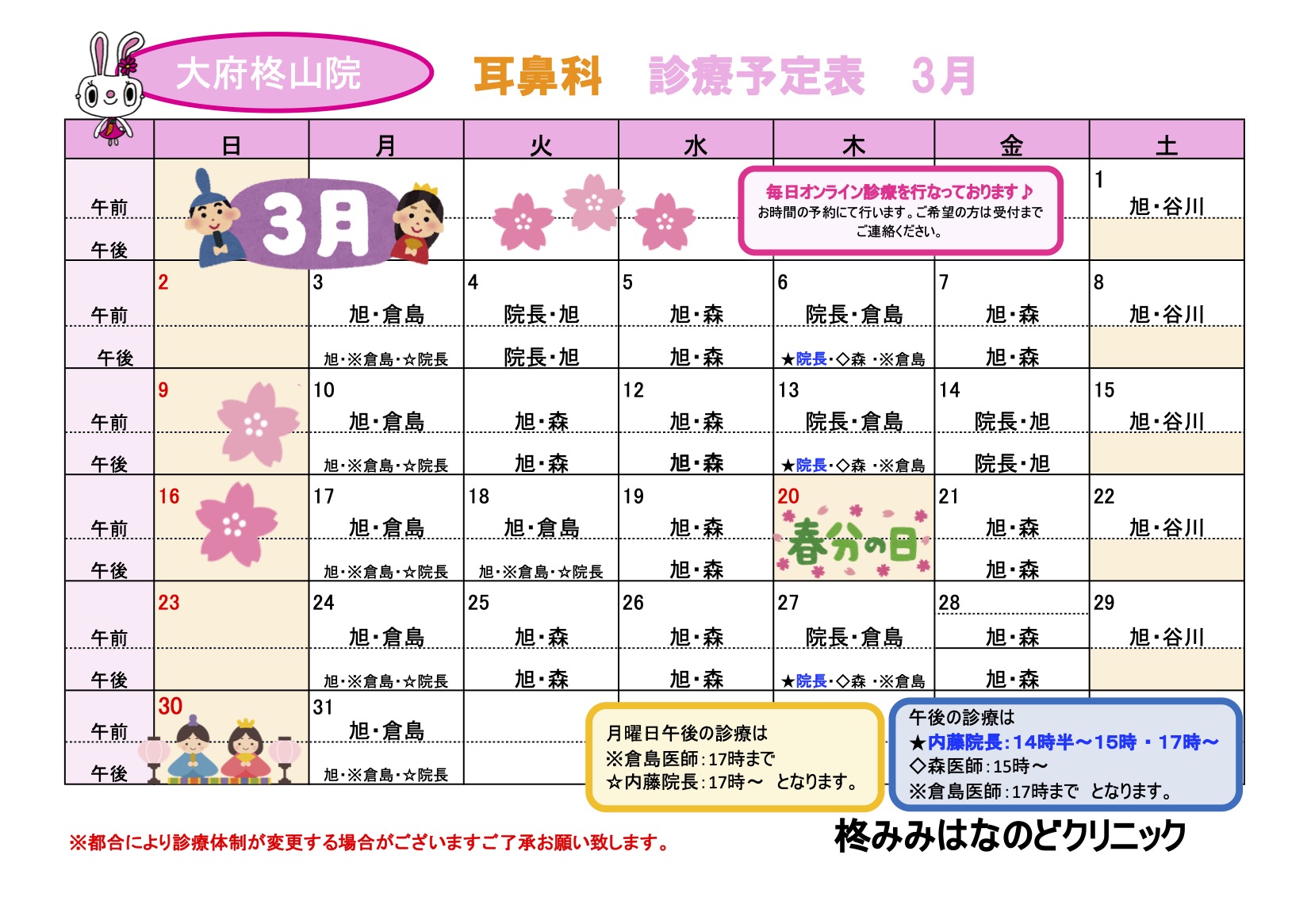 1月診療予定表