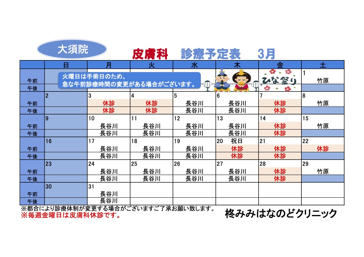 3月診療予定表