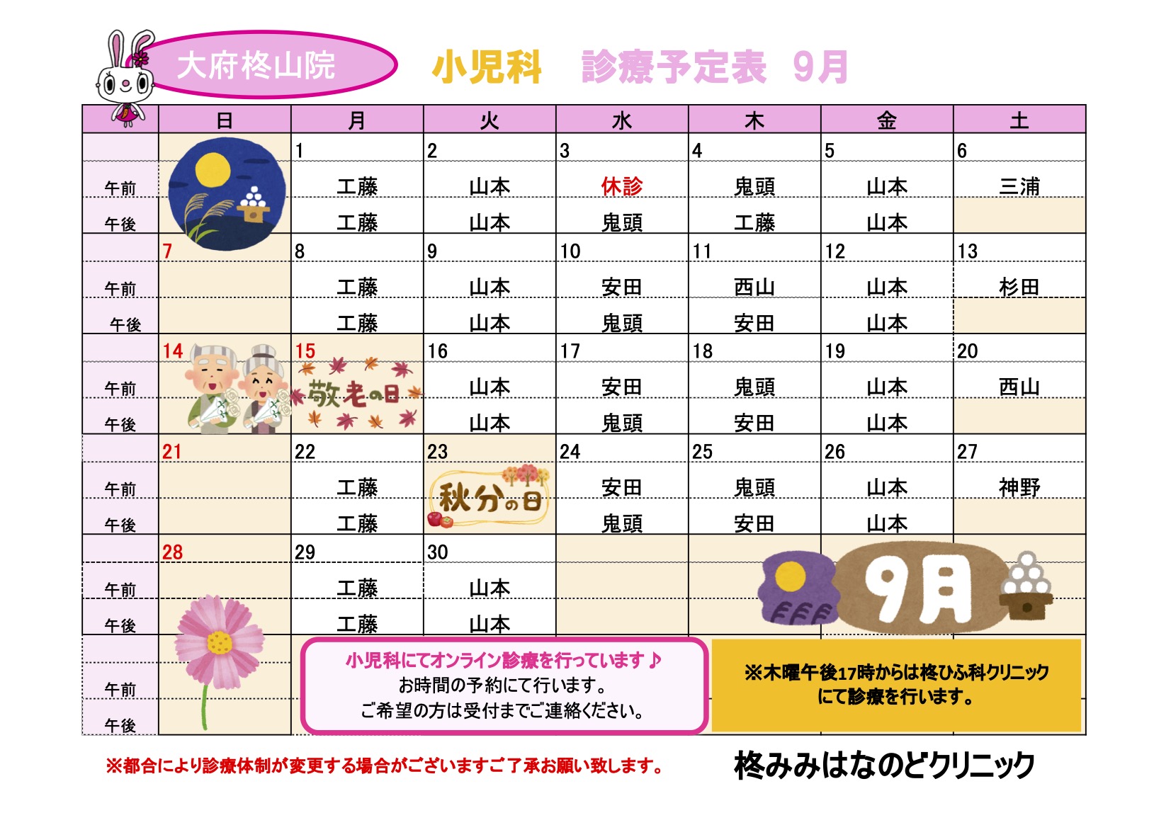 R7.9 大府(耳鼻科)診療予定