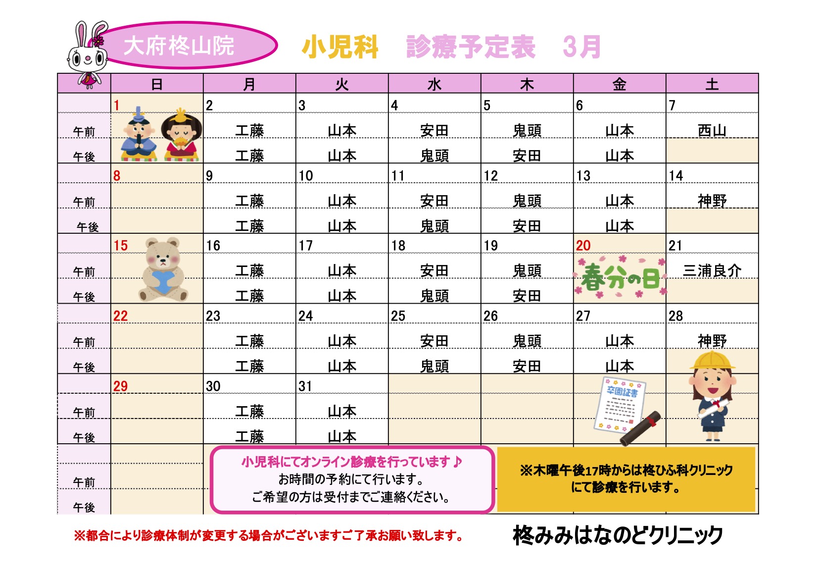 3月診療予定表